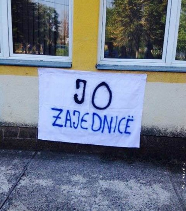 Банда шиптарских ђака је своју школску годину, током које ће учити још о разлозима да мрзе Србе над којима су извршили геноцид, истакла крпу на којој захтева више у корист Срба него у сопствену.